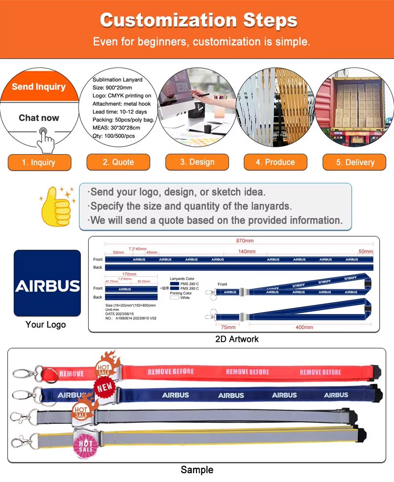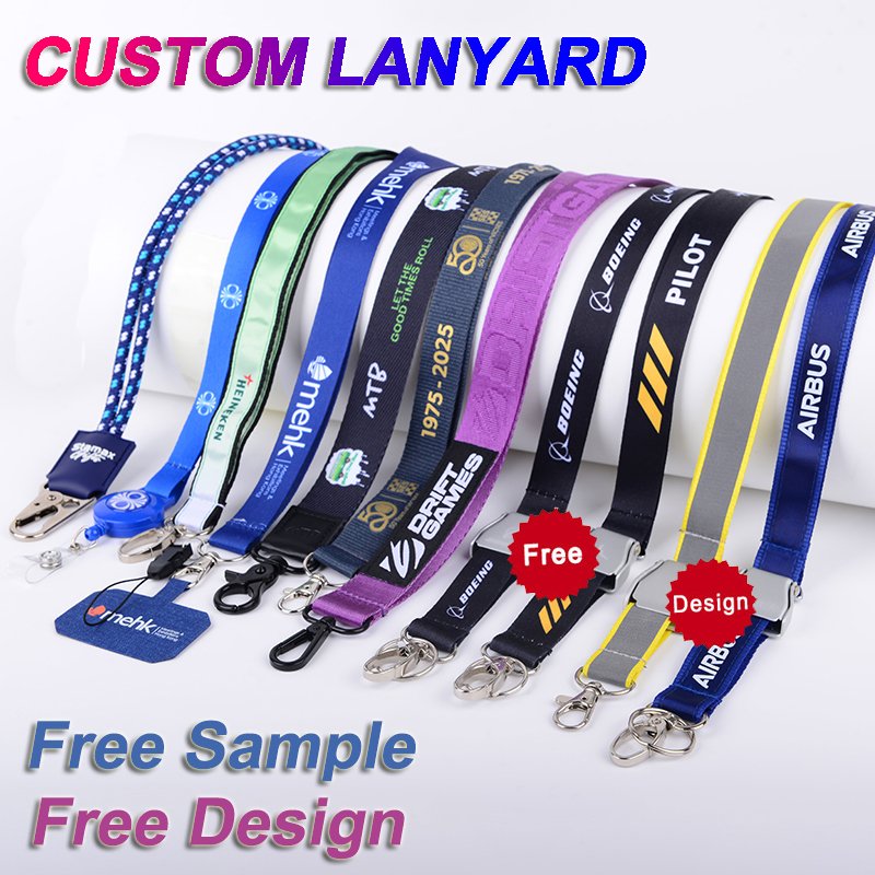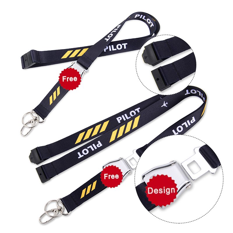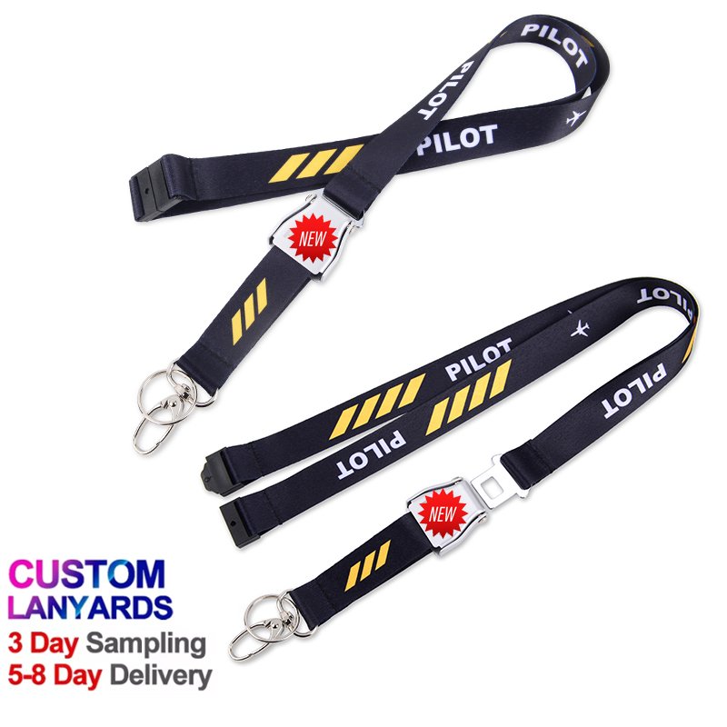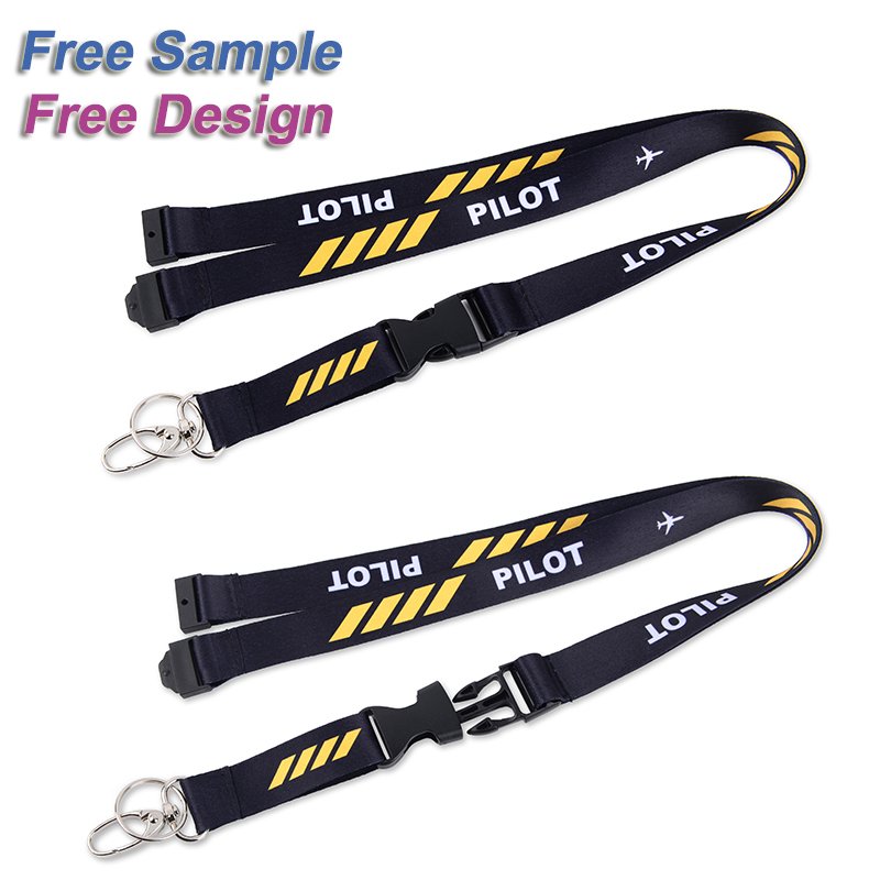 Polyester and nylon silksreen printing color safety buckle design lanyard