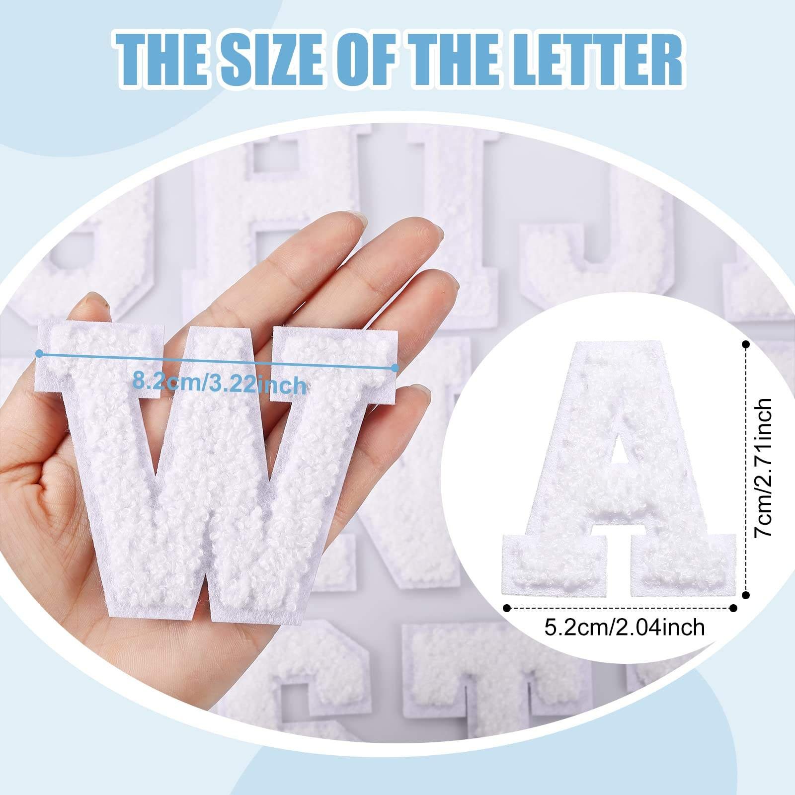 • Package Contents: you will receive 26 pieces of white iron on letter patches from A-Z, of which each letter has four, the chenille letters measure about 3.2 inches in height and 2.4 inches in width, ideal in size, delicate and attractive, enough to meet your daily uses, replacement and sharing needs